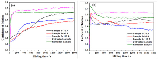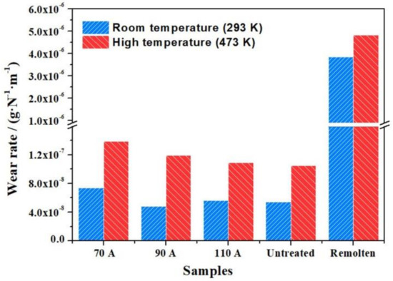 - The Cu composite coatings exhibit outstanding antifriction behavior. Compared to the untreated sample, the COFs and the wear rates of the PTA alloying samples are significantly lower due to the lubricating effect of Cu particles.