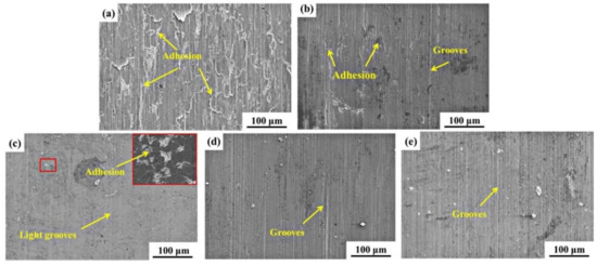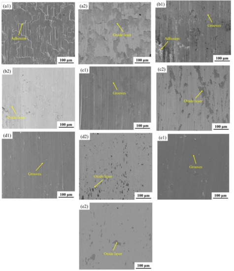 3.4. Worn Surface Analysis and Wear Mechanisms
