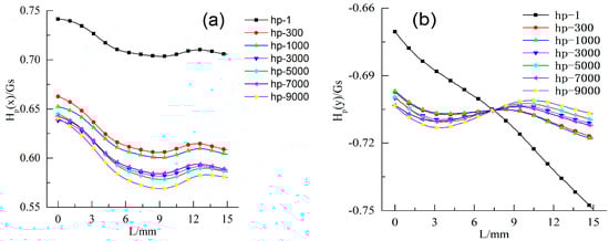 MMM signals of the specimen after crack propagation: (a) Hp(x); and (b) Hp(y).