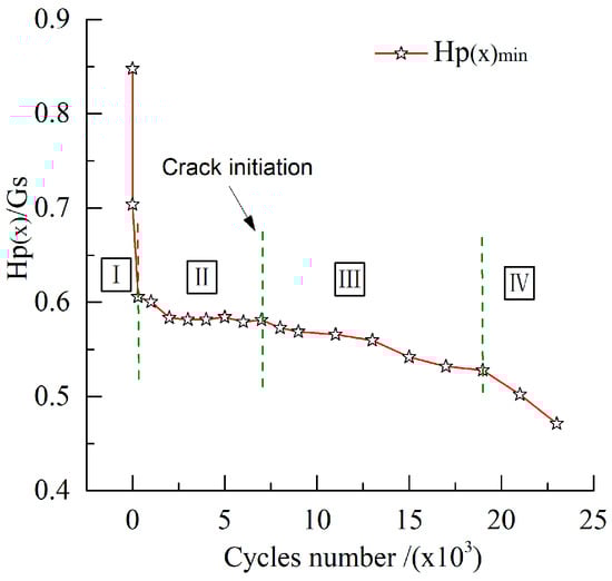Variations of Hp(x)min at different fatigue cycles.
