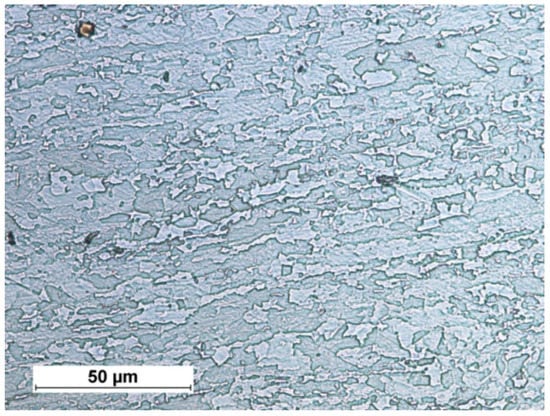 The research-related tests aimed to identify the properties of butt hybrid welded (laser beam-MAG) joints made of 10-mm-thick steel S700MC using a copper strip and solid wire GMn4Ni1.5CrMo having a diameter of 1.2 mm. The chemical composition and the properties of the steel and weld deposit are presented in Table 1 and Table 2, whereas the steel microstructure is presented in Figure 2.