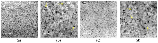 It is important to mention that several elongated ellipsoidal particles are observed with most other particles in a spherical shape and the ellipsoidal particles are indicated by yellow arrows in Figure 7b,d. The appearance of the ellipsoidal particles is due to the higher content of Cu in the Al alloy []. It was demonstrated that only spherical precipitates were observed in the Al–Zn–Mg alloy at the peak aging condition, and the atomic prove microanalysis showed evidence of Cu-free in the particles whereas the ellipsoidal particles contained a significant amount of Cu in an Al–Zn–Mg–Cu alloy after age hardening.