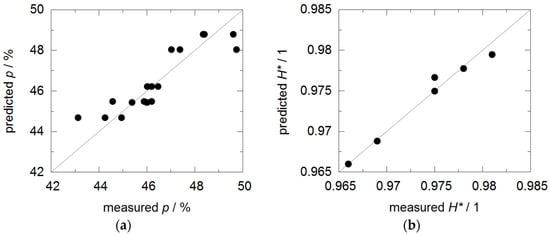 The coefficients were determined by least-square fitting of the model to the obtained results for each parameter. Thus, a quantitative relation of each property and the additive concentration was obtained. The quality of the model was checked for each of the parameters by comparing the model predictions gpred with the measured properties gmeas ( being the mean measured value) via the following function: