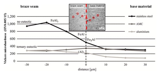 - Elßner, M.; Weis, S.; Wagner, G. Joining of Aluminum Matrix Composites and Stainless Steel by Arc Brazing. Mater. Sci. Forum 2015, 825, 393–400. [Google Scholar] [CrossRef]
