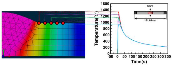 In actual welding, it is difficult to evaluate the microstructure characteristics because the HAZ is a narrow region owing to various thermal cycles. Therefore, the simulated HAZ was fabricated by using Gleeble 3500 (Dynamic Systems Inc., New York, NY, USA) thermal cycle simulator and the microstructure was observed. The thermal cycle of the HAZ was determined using the Sysweld software 9.5 (ESI, Paris, France) for the simulation of welding analysis.