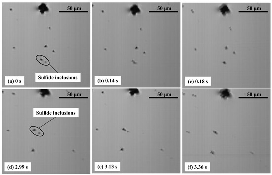 - The agglomeration behaviors of sulfide/sulfide particle pairs and sulfide/semi-liquid oxide pairs on the surface of liquid high-carbon steels were observed in situ by using CSLM. Agglomerations between oxide/oxide pairs were not detected because they were surrounded by sulfide particles shortly after floating up to the surface.