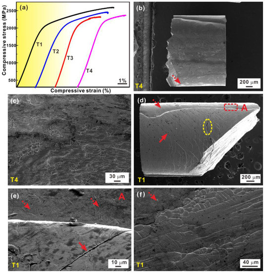 - Qiao, J.W.; Sun, A.C.; Huang, E.W.; Zhang, Y.; Liaw, P.K.; Chuang, C.P. Tensile deformation micromechanisms for bulk metallic glass matrix composites: From work-hardening to softening. Acta Mater. 2011, 59, 4126–4137. [Google Scholar] [CrossRef]