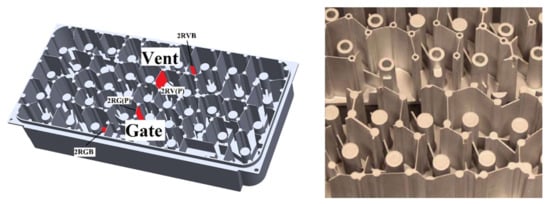 A telecom cavity filter (Figure 1) was rheocast by a 400 ton HPDC machine equipped with an automated RheoMetalTM slurry generator. The RheoMetalTM (Stockholm, Sweden) process uses an Enthalpy Exchange Material (EEM) as slurry generator [42].