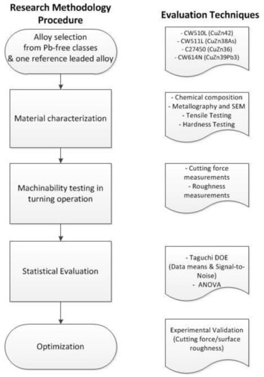 The research approach was based on the experimental methodology applied aiming to evaluate the alloy performance in a more holistic view, which is presented schematically in the following flow chart (Figure 1).