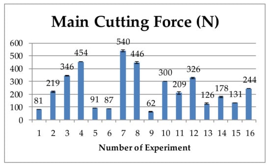 Surface quality is of major significance, and explicitly demanded in high-precision and productivity machining processes. Moreover, the use of high-speed cutting ensures increased productivity, workpiece dimensional accuracy and improved surface finish []. Cutting force is also another important machinability performance indicator, which constitutes a criterion for the selection of optimal process conditions, affecting tool lifetime significantly. Cutting forces could also be calculated using mathematical models and employing renowned machining theories (Oxley’s machining theory) based on the determination of strain rates along the shear plastic zone and tool/chip interface [,].