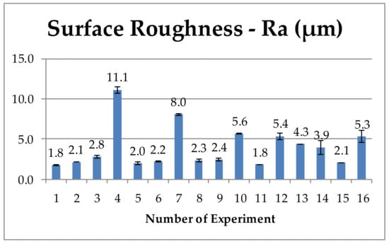 Histogram showing the surface roughness—Ra (μm) resulting under various turning conditions.