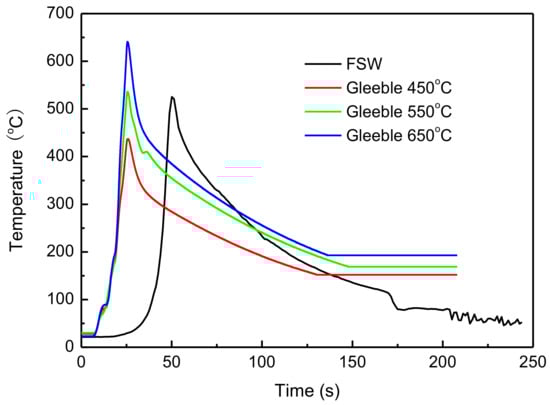 Temperature variation of the HAZ in the FSW joint and the welding thermal simulation specimens.