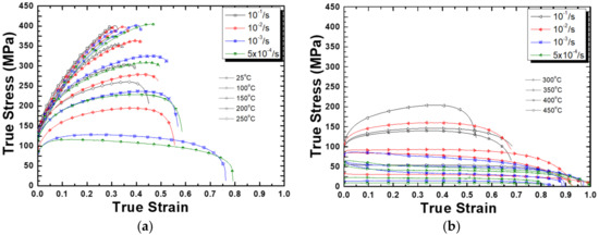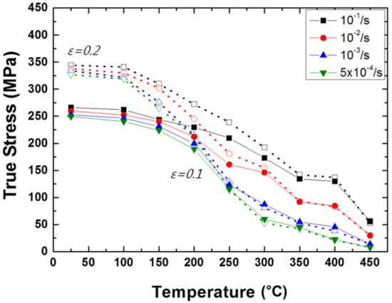 Figure 3 also shows that flow stress depended on strain, at temperatures below 300 °C and at high strain rates. In general, plastic flow stresses of metallic alloys, including aluminum alloys, at constant temperatures can be expressed by [