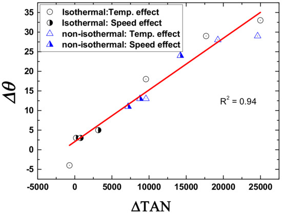 Figure 10. Second, according to Equations (3), (8) and (22), ΔTAN increases as strain rate increases and temperature decreases. Thus,