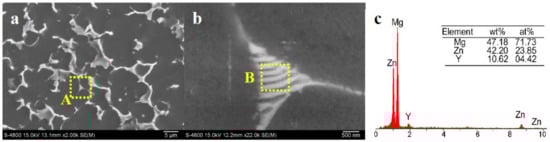 - Zhang, Y.B.; Yu, S.R.; Zhu, X.Y.; Luo, Y.R. Study on as-cast microstructures and solidification process of Mg–Zn–Y Alloys. J. Non-Cryst. Solids 2008, 354, 1564–1568. [Google Scholar] [CrossRef]