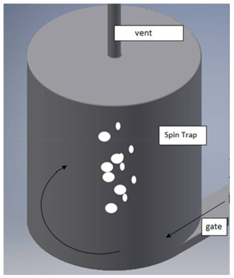 Another gating system modification that was proposed by some researchers is the so-called spin trap system, thus this option was also checked by the authors of this paper. Figure 8 shows the idea of the spin trap and Figure 9 presents the modelling results.