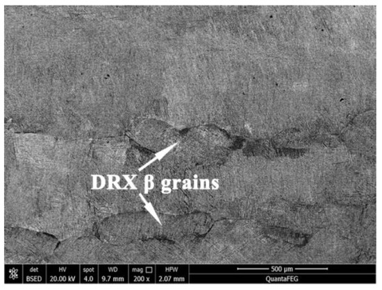 The microstructure of the samples deformed in the β phase field are shown in Figure 12; the results indicated that DRX occurred when the deformation temperature was in the β phase field.
