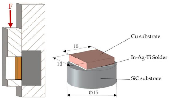 - The measurement of shear strength was performed across a wide scope of metallic and ceramic materials. The average shear strength of a combined joint of SiC–Cu, fabricated with In10Ag4Ti solder, was 14.5 MPa. The results of measurements show that the strength of ceramic–metal joints in the case of In10Ag4Ti solder is comparable to that of metal-metal joints. This is because of the excellent wettability of indium on the ceramic materials at ultrasonic activation.