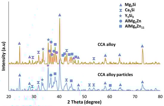 | Mg-2.5 wt % CCA (1.6 vol %) | 127 ± 5 (40%) | 414 ± 6 (57%) | 15 ± 1 |