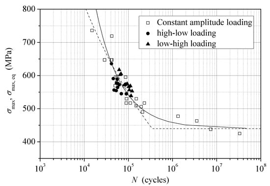 - Manson, S.; Halford, G.R. Practical implementation of the double linear damage rule and damage curve approach for treating cumulative fatigue damage. Int. J. Fract. 1981, 17, 169–192. [Google Scholar] [CrossRef]