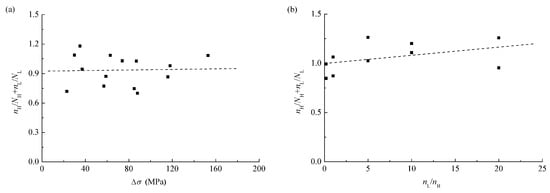 Comparison between the experimental results with (a) nL/nH = 1 and (b) Δσ = 59 MPa.