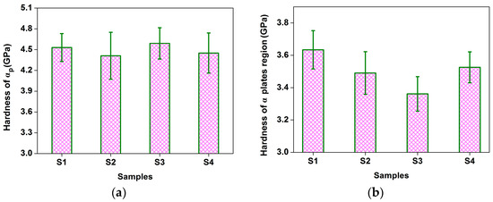 Hardness of different constituent phases: (a) αp, (b) α plates region.