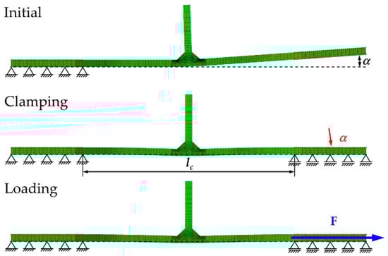 Building on the results of the clamping procedure, the loading of the specimen is simulated, see