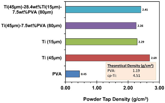 Tap density of Ti, PVA and two feedstock materials.