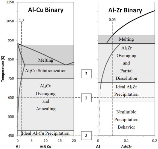 3Zr precipitates, but the only way to achieve this in this ternary system is to decrease the alloy Cu concentration, and in turn the potential for Al-Cu strengthening (see the solvus line for the Al-Cu binary in