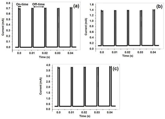 | On-time, Off-time | 0.001 s, 0.01 s |