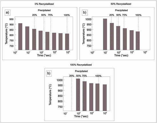 In order to maintain good control of the TMCP, a good understanding of the two processes involved is required; the complex interaction between strain precipitation of niobium carbonitride in austenite and static recovery [38,39,40,41] (Figure 3). The effect of initial austenite grain size and rolling temperature on the critical strain for recrystallization was studied by Tanaka et al. [42] and Kozasu et al. [43], and they reported excellent results in the year 1975, Figure 4 and Figure 5.
