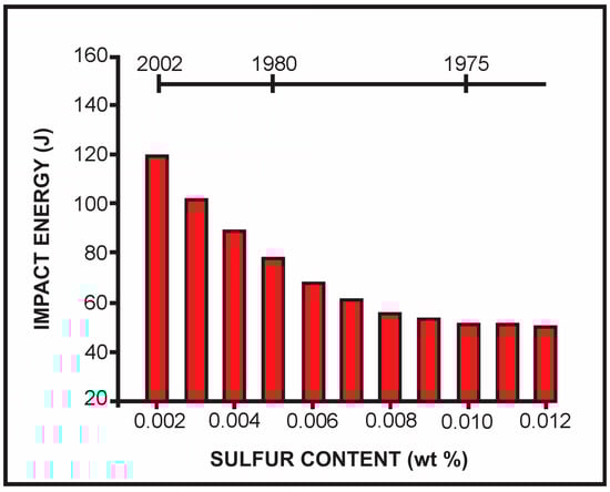 Over the years, the sulfur content has been reduced in the alloys of microalloyed steels, which has allowed for continuously improving the toughness of steels (Figure 12).
