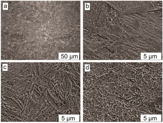 - Liu, D.; Bai, B.; Fang, H.; Zhang, W.; Gu, J.; Chang, K. Effect of tempering and Carbide Free Bainite on the Mechanical Characteristics of a High Strenght Low Alloy Steel. Mater. Sci. Eng. 2004, 371, 40–44. [Google Scholar] [CrossRef]