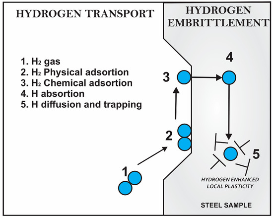 - Hirth, J. Effects of hydrogen on the properties of iron and steel. Metall. Trans. A 1980, 11, 861–890. [Google Scholar] [CrossRef]