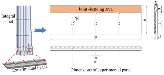 In order to simplify the experiment and simulation approach against real integral panel in factory, an experimental sample is designed based on a real aircraft integral panel according to geometrical similarity, as shown in Figure 1. The experimental sample is 200-mm long, 60-mm wide, and 7.5-mm thick. The thickness of the ribs is 2 mm.