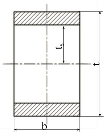 The section of the equivalent rectangular plate that wraps around the punch is taken as the investigation object in this study. The cross section of the SPM is shown in Figure 5.