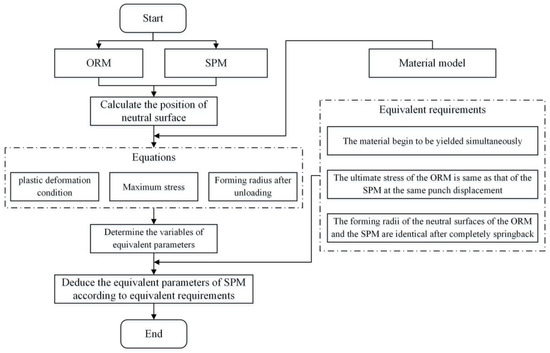 According to equivalent requirements, the following three conditions are required to meet: (i) the material begin to be yielded simultaneously; and (ii) the ultimate stress of the ORM is the same as that of the SPM at the same punch displacement; (iii) the forming radii of neutral surfaces of the ORM and the SPM are identical after springback.