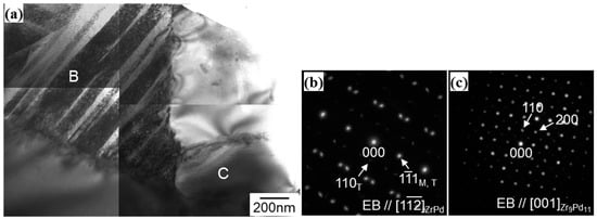 - Nishiura, T.; Yamamuro, T.; Hashimoto, D.; Morizono, Y.; Nishida, M. Martensitic transformation and phase equilibrium in near equiatomic Zr-Pd alloys. Mater. Sci. Eng. A 2006, 438–440, 852–856. [Google Scholar] [CrossRef]