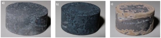 Simka et al. [] suggested using acidic solutions containing H3PO4 and Ca(H2PO2)2 in case of PEO treatment of Ti-15Mo alloys. Following this suggestion and targeting a uniform appearance of the anodic layers, it was decided to use three acidic solutions, namely Ca(H2PO2)2·2H2O + Ca(H2PO4)2·2H2O with pH = 4.5 (series 9), Ca(H2PO4)2·2H2O + Ca(CH3COO)2·2H2O with pH = 4.33 (series 10), and Ca(H2PO2)2·2H2O + Ca(CH3COO)2·2H2O with pH = 3.44 (series 11). The main reason for choosing these combinations of compounds was their comparatively high solubility in water, which allowed using more concentrated solutions. Besides, in contrast to previous compositions, these solutions are relatively stable, despite the fact that both contain Ca salts. First experiments showed that, unlike alkaline electrolytes, these three acidic solutions are suitable for obtaining smooth and adherent coatings on the Ti-15Mo alloy (Figure 2).