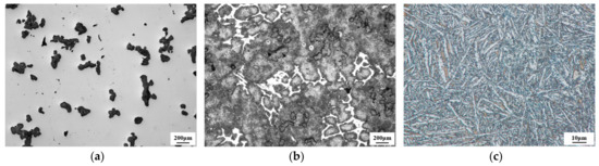 Graphite morphology (a) and microstructure of DCI after the cladding process at low (b) and high (c) magnification.