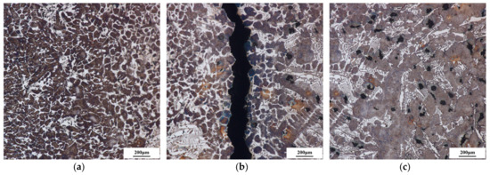 In order to have a further understanding for the cause of the tensile fracture, microstructure of the fracture location was analyzed by using the DSX510 OLYMPUS metallographic microscope (OLYMPUS Corp., Tokyo, Japan). The results are shown in Figure 12.