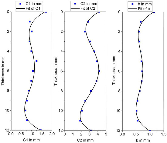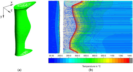- Approximated simplified and fixed keyhole geometry from the weld cross-section (see Figure 4), used as a model parameter to adapt the numerical to the experimental results. Thus, effects caused by keyhole oscillations were not considered.