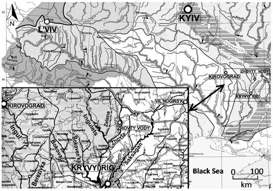 Significant environmental pollution in the Kryvyi Rig basin relates to industrial activity in Zhovty Vody city. The largest is the state enterprise for uranium ore mining and milling—“Eastern Mining and Concentration Combine Works” (SE “VostGOK”). Waste products associated with uranium processing represent a major source of surface and groundwater contamination [2,3].
