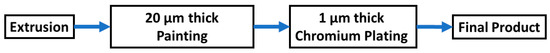 This work aims to assess the occurrence of a relationship between the surface quality and the use of internal liquid nitrogen cooling of the extrusion mold. Indeed, for structural frame applications, such as in this case, the extruded surface can be threated via the following aesthetic surface processes that might highlight surface defects. In the present work, in detail, the extruded semi-products undergo a 20 μm painting process and a 1 μm thick chromium plating process (Figure 2).