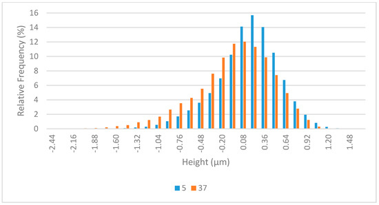 Height histogram of the samples’ surfaces: traditionally extruded (specimen 5) and the liquid nitrogen cooled (specimen 37).