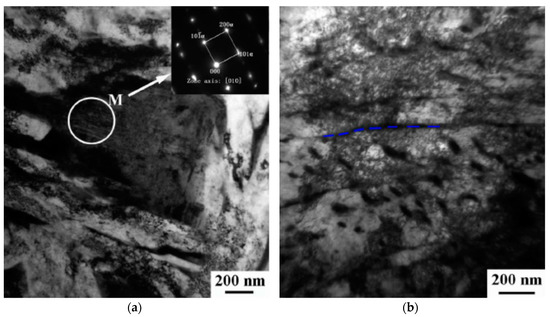 TEM images of low-cycle fatigue tests (Δε/2 = 1.0%) for the [5]: (a) carbide-free lower-bainite; (b) carbide-bearing lower-bainite. Reproduced from [5], with permission from publisher Elsevier, 2018.