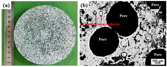 Cross section (a) and ceramic microspheres (CMs) morphology (b) in composite foams.