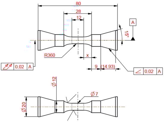 All steels were first solution-annealed at 1150 °C for 45 to 60 min and quenched. Cone-head samples were manufactured from Ø 20 × 100 mm blanks and afterwards ground and polished within the reduced length of 28 mm (Figure 1). Grinding was carried out in the axial direction by means of SiC-emery paper (Struers, Willich, Germany) down to a 1200 mesh size, followed by polishing with either polycrystalline diamond (ATM GmbH, Memmelzen, Germany) of a 1 μm grain size or electrochemically in perchloric acid (700 mL ethanol, 110 mL aqua dest., 100 mL Butyldiglycol, 78 mL perchloric acid) at −35 °C. Finally, the specimens were inspected by means of a light microscope at five-fold magnification in order to check for surface flaws.