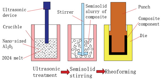 Experimental scheme of the rheoformed 2024 aluminum matrix composite reinforced by Al2O3 nanoparticles and original 2024 components.