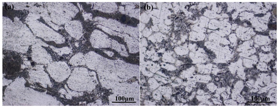 Increasing stirring time resulted in a fine-grained microstructure of composite semisolid slurries (Figure 10). As indicated in Figure 10a, coarse solid grains of more than 200 µm were found in the microstructure when stirring time was 5 min. With an increase in stirring time, solid grains were refined significantly (Figure 10b–e). When stirring time was 25 min, the average size of solid grains was about 46 µm. Fine-grained microstructure can improve mechanical properties of the rheoformed composite components due to the Hall-Petch effect [32]. However, the grain size of solid grains changed slightly when stirring time increased from 25 min to 30 min. As a result, the mechanical properties of the rheoformed composite components also changed slightly, or even showed a slight decrease.